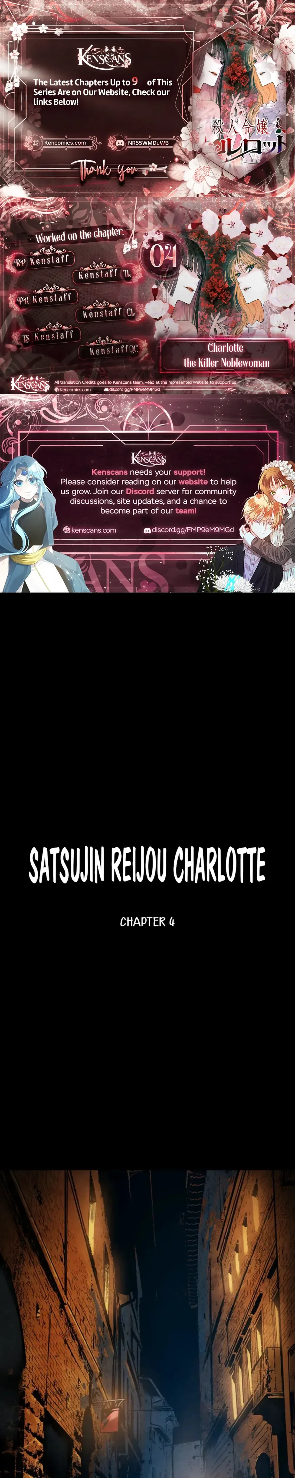 Charlotte, the Killer Noblewoman Chapter 4 includes 23 comic pages in the main reading order. Published April 1, 2026 and updated April 6, 2026.